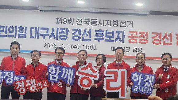 국민의힘 대구시장 경선 후보들이 한자리에 모여 공정한 경쟁과 ‘원팀’ 구성을 다짐하며 본격적인 경선 국면에 돌입했다.