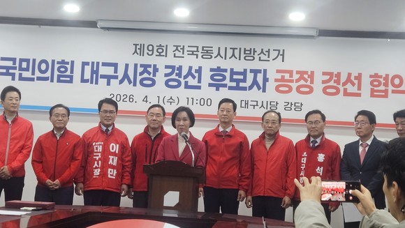 국민의힘 대구시당은 1일 오전 당사 강당에서 ‘대구시장 경선 후보자 공정경선 협약식’을 개최하고 네거티브 없는 정책 중심의 깨끗한 경선을 약속했다.
