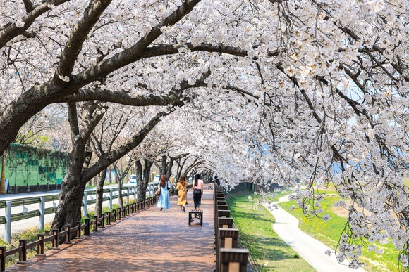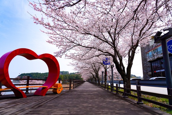 근남면 성류굴 진입로와 망양정 방면 보행자 데크길은 벚꽃 터널이 장관을 이루며 대표적인 봄 명소로 꼽힌다.