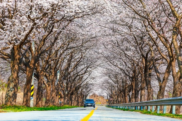 울진군 전역에 벚꽃 만개, 손님맞이 준비 끝 근남 망양정 가는길.(사진=울진군 제공)