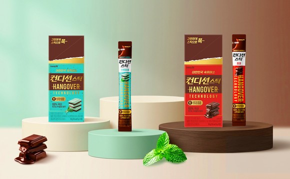 HK이노엔이 숙취해소 제품 브랜드 ‘컨디션’의 신제품 ‘컨디션스틱 초코’와 ‘컨디션스틱 민트초코’를 출시한다고 6일 밝혔다.
