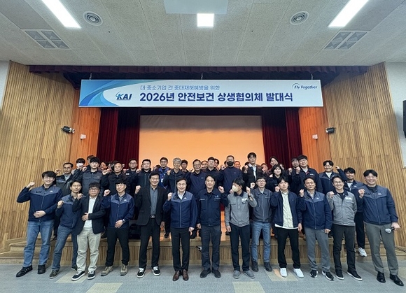KAI(한국항공우주산업㈜)는 지난 9일 사천시에 위치한 근로자종합복지관에서 ‘2026년 대중소기업 안전보건 상생협의체’를 발족하고 사내외 협력사와 발대식을 가졌다고 10일 밝혔다.