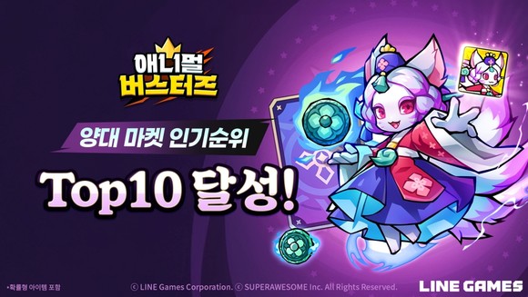라인게임즈는 개발 관계사 슈퍼어썸이 개발하고 자사가 서비스하는 모바일 캐주얼 방치형 RPG ‘애니멀 버스터즈(Animal Busters)’가 출시 초반 양대 마켓 인기 순위권에 진입했다고 10일 밝혔다.