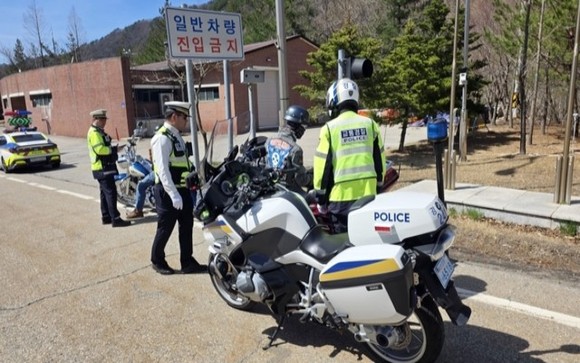 인제경찰서·고성경찰서는 봄철 라이딩 동호회 등 이륜차 통행량이 급증함에 따라 13일 미시령터널 일대에서 이륜차 교통법규 위반 합동단속을 실시했다.