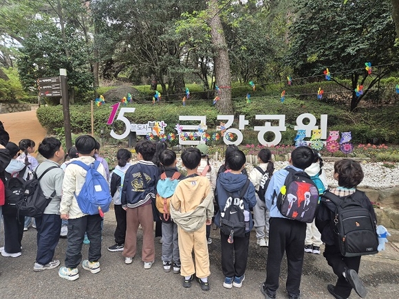 14일 금강공원을 찾은 아이들이 포토존을 둘러보고 있다.(사진=공단 제공)