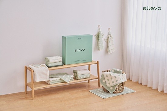 이번에 처음 공개되는 '알레보 오브 타월 패키지'는 누적 140만장 판매된 알레보의 인기 상품 '디엣지 타월'의 후속 신제품이다. 패키지는 솔리드·스퀘어·스트라이프 패턴의 페이스타월 10개와 핸드타월 2개로 구성된다. 특히, 타월 끝단의 경계를 없앤 보더리스 공법과 앞면과 뒷면이 서로 다른 리버시블 디자인을 적용해 실용성을 높였다.