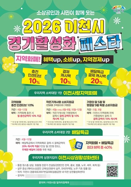 이천시 관계자는 "이번 페스타는 단순한 지원을 넘어 시민과 소상공인이 함께 상생하는 축제의 장"이라며, "연말까지 더 많은 시민들이 혜택을 누릴 수 있도록 홍보에 박차를 가하겠다"고 밝혔다.