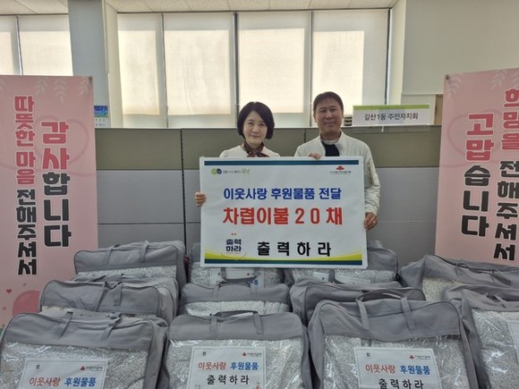 갈산1동은 ㈜출력하라로부터 어려운 이웃을 위한 차렵이불 20채를 전달받았다.