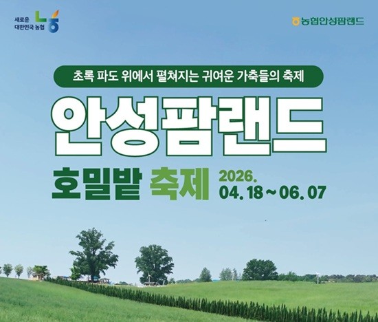 농협 안성팜랜드가 오는 4월 18일부터 6월 7일까지 봄 시즌 ‘안성팜랜드 호밀밭 축제’를 개최한다고 17일 밝혔다. 이번 축제에서 방문객은 호밀밭을 감상하고 체험 프로그램 ‘플레이팜’과 한정 메뉴 ‘호밀라떼’를 즐길 수 있다. 플레이팜은 4가지 미션을 수행하며 가축을 돌보는 프로그램이다.