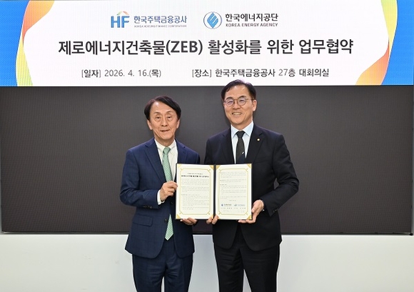 한국주택금융공사는 지난 16일 녹색건축물 활성화를 위해 한국에너지공단과 ‘제로에너지건축물(ZEB) 활성화를 위한 업무협약’을 부산시 남구에 있는 공사 본사에서 체결했다고 밝혔다.