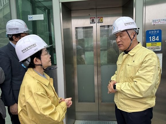 고성균 이사장은 이날 노후 승강기 정밀안전검사 현장을 직접 방문해 정밀안전검사 과정을 확인하고, 현장 근로자의 안전모·안전화 등 필수 보호구 착용 상태 및 장비 노후도를 점검하며 현장의 애로사항을 직접 청취했다.