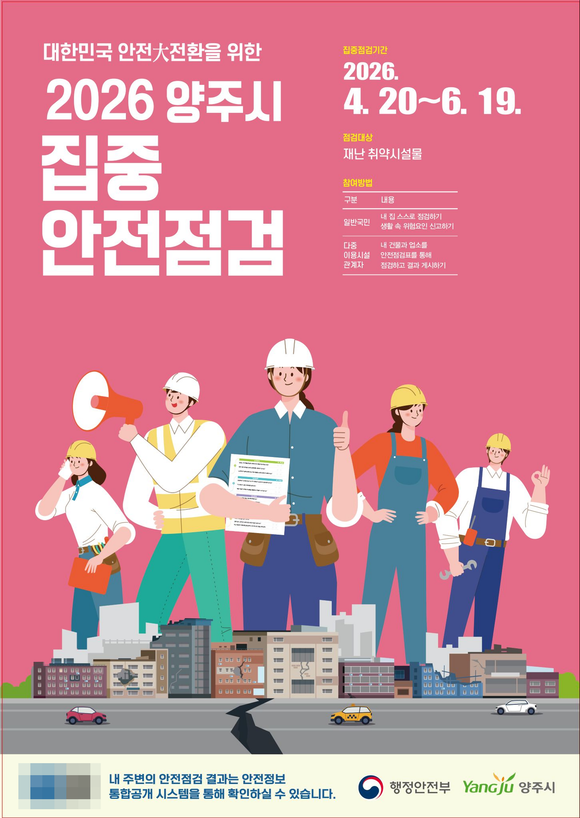21일 양주시에 따르면, 내달 19일까지 두 달간 ‘2026년 집중 안전점검’을 실시한다.