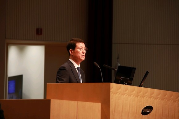 오세철 대표가 지난달 20일 서울 강동구 글로벌엔지니어링센터에서 열린 삼성물산 정기 주주총회에서 발언하고 있다. (사진=삼성물산)