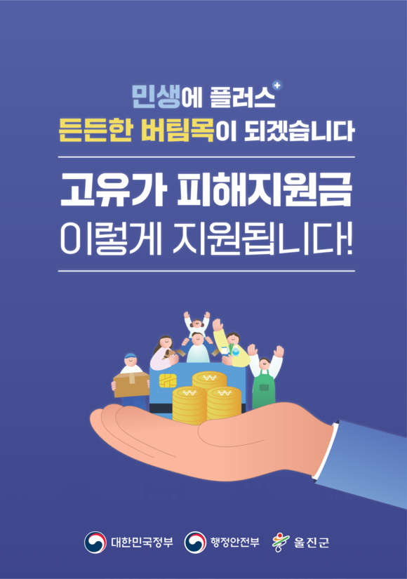 울진군 관계자는 “고유가 장기화로 고통받는 군민들에게 이번 지원금이 실질적인 버팀목이 되길 바란다. 모든 대상 군민이 불편함 없이 신속하게 지원받을 수 있도록 안내와 행정 지원에 만전을 기하겠다”라고 밝혔다.