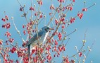 경칩을 하루 앞둔 4일 경남 함양군 하림공원 작은영화관 옆 산수유나무에서 직박구리가 산수유 열매를 쪼아 먹고 있다.